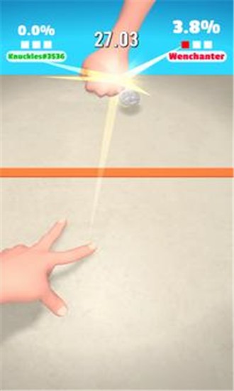 弹指之击是一款休闲类的游戏,在游戏中玩家需要利用手指的关节将硬币放在手上,将硬币弹射出去,到达指定的位置即为胜利,这是双人对战游戏,在对手攻击的时候可以进行干扰,率先完成任务的玩家获胜,玩法非常简单,适合所有的玩家,快来体验吧!