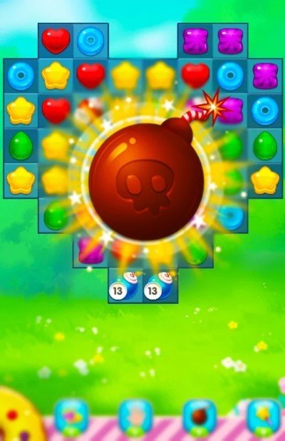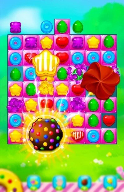 2.糖果的鲜艳色彩将带您进入神奇的土地!交换、切换、滑动和匹配4个或更多相邻的相同糖果,并创建炸弹糖果或助推器以摧毁整行并获得更多积分。