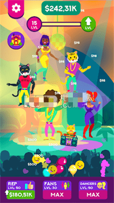 2、游戏是免费的,超多类型的舞者可以解锁购买,放置赚钱;