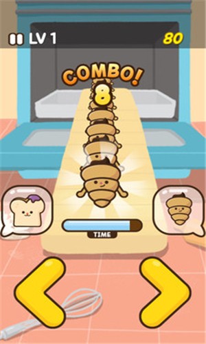 2、排放好所有的面包即可通关,并可以在两分钟内进行游戏的挑战喜欢无限面包店;
