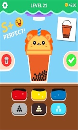 玩家体验制作各种各样的奶茶,关卡内没有时间限制。