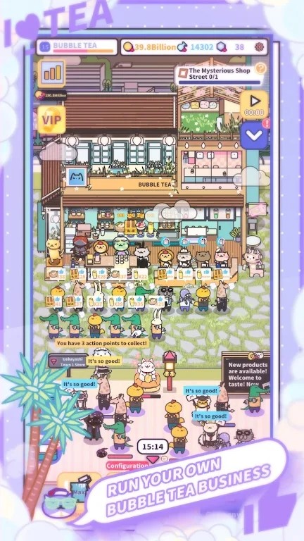 2、招募可爱和著名的猫咪,并开发出最杰出的泡泡茶配方,增强店影响;