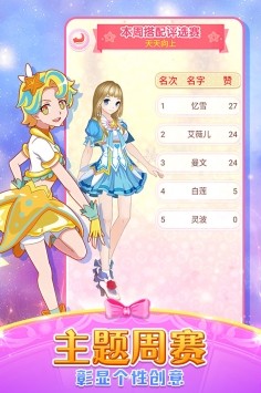 3. 梦幻主题比赛:所有的小魔仙都能参加每周的梦幻主题魔法换装比赛,邻家清纯小妹或是乖萌可爱萝莉,百变魔仙在你手上任你随心变幻风格,搭配出你的最爱!