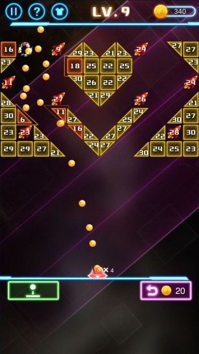 1.在游戏中,玩家的任务是用弹珠来射击砖块,得到更多的金币和点数。
