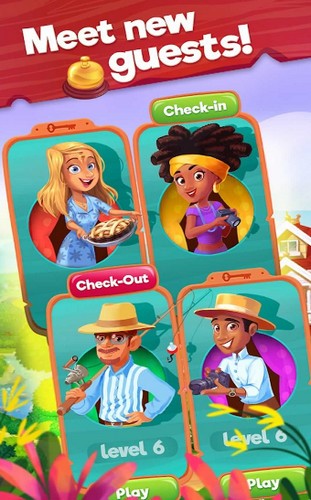 早餐旅馆游戏玩法还是非常简单的,且玩起来非常有趣,你可以解锁新的人物来帮你做事,也可以邀请顾客去你的农场里参观你种种植的蔬菜和水果,同时你也可以请人帮你售卖餐馆里的食物,欢快的背景音乐让你玩起来更加轻松。