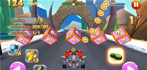 1、所有高清化的模式下进行冒险,其中还有各个的能够驾驶的炫酷卡丁车;