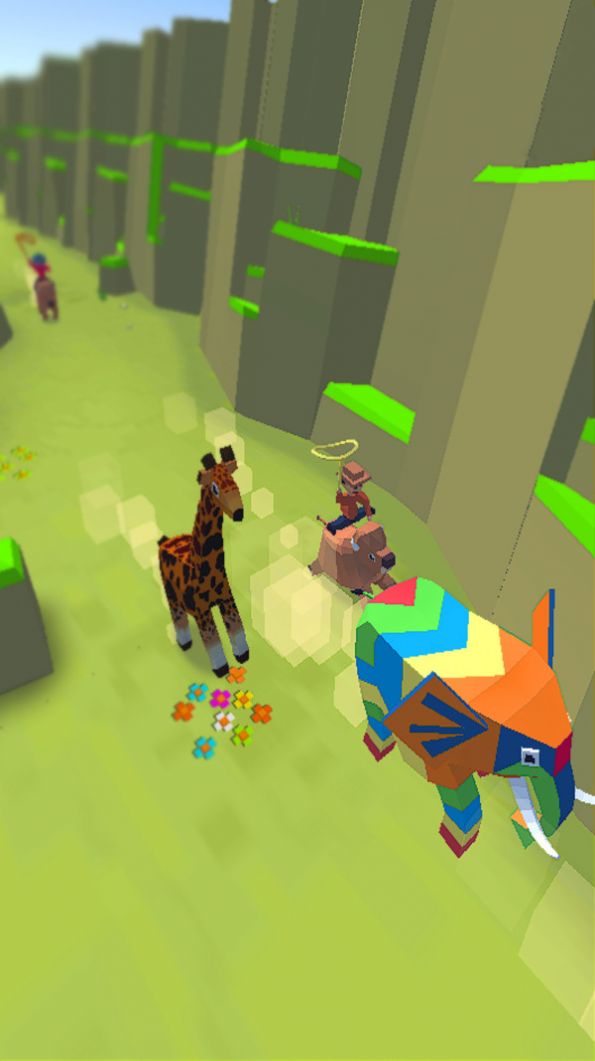 这里有斑马、长颈鹿、大象等等动物,成功套住野生动物后就能驯服并换乘不同的野生动物,操作虽然简单但是玩起来还是需要一点技巧的!