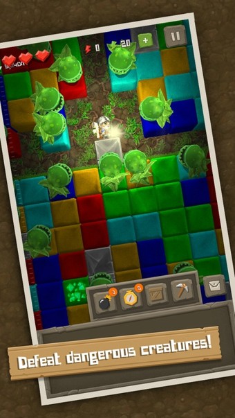 地心冒险 Puzzle to the Center of the Earth:地心冒险核心玩法是融合了横版过关加上益智消除游戏模式,整体游戏还是觉得非常不错的,游戏里面的小矿工角色做的不错,感觉立体感非常的强。