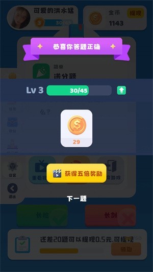 虽然每答对一题就有奖励,但是这个奖励非常少,只有个位数左右的红包以及元宝奖励。