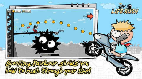 这是一款卡通风格的闯关冒险游戏,触摸屏幕和画线可以避免障碍物并获得游戏物品。