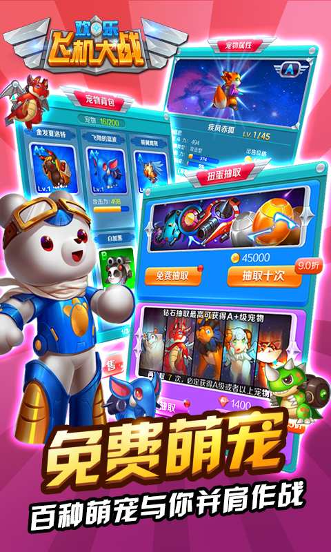 2、玩家可以带着自己的宠物小伙伴一起在辽阔的天空并肩作战;