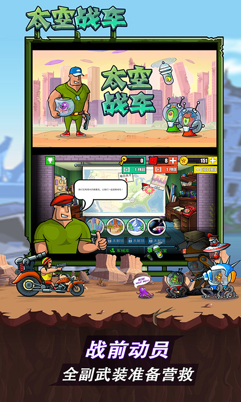 太空战车只有搭配更加强力的武器才能更好的面对以后的关卡,玩家将在游戏中操控着介绍在充满未知危险的太空中射击,玩家需要利用能利用的武器打败敌人,同时玩家还需要不断完成任务获得奖励,升级自己的战车。超多好玩的冒险关卡给你带来最畅快的游戏体验,在游戏中你将要驾驶着自己的搭配了无数强大武器的战车进入游戏中进行探索。