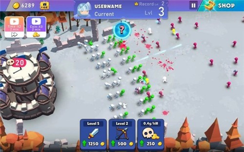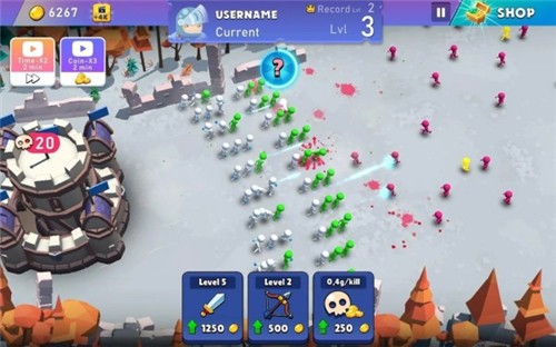 而在后面的战斗中,玩家只要不断的消耗金币提升属性就可以进行防御进攻。