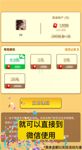 可以提现,玩家领取的蛋越多就能兑换更多的红包随时进行提现实时到账,超多有趣的饲养挑战玩法你可以自由选择体验,类型不同的动物能够为你带来不同的收益,更好的饲养环境能够让你收获更多的蛋,让自己不断完成更多任务体验更多不同饲养挑战乐趣,也能获得更多红包奖励。