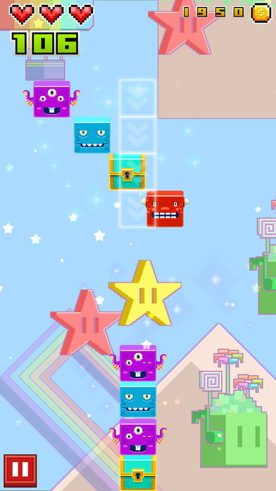 游戏中需要踩着节奏在跳台之间旋转跳跃,激萌小方块陪你度过闲暇时光!