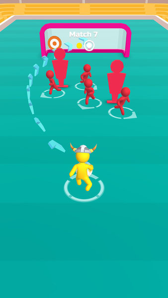 以经典的面条人形象风格设计的全新娱乐性体验,和飞盘大作战玩法类似,突破防守完成射门即可;