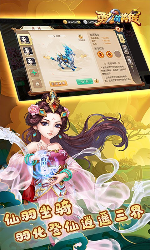 2、多种搭配的萌宠坐骑、自主建立的战斗队伍。