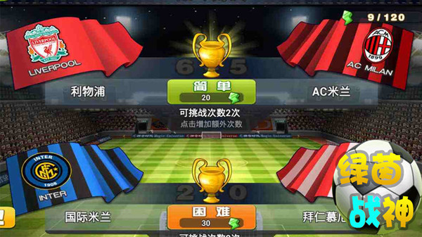 绿茵之路:玩家可依次对亚洲、非洲、北美洲、南美洲、欧洲的各大知名俱乐部、国家队进行挑战,挑战成功后可获得球队升级经验,金币等奖励。
