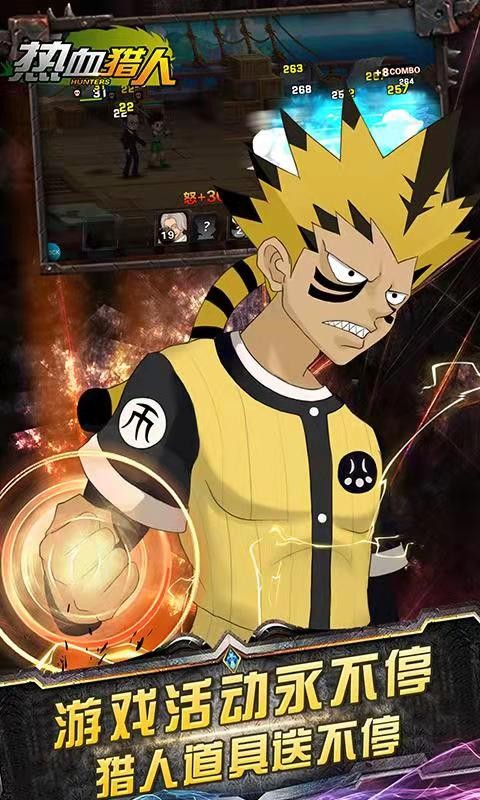 1.热血猎人是一款卡牌对战游戏,刺激的冒险游戏。根据动漫全职猎人为原型的游戏。