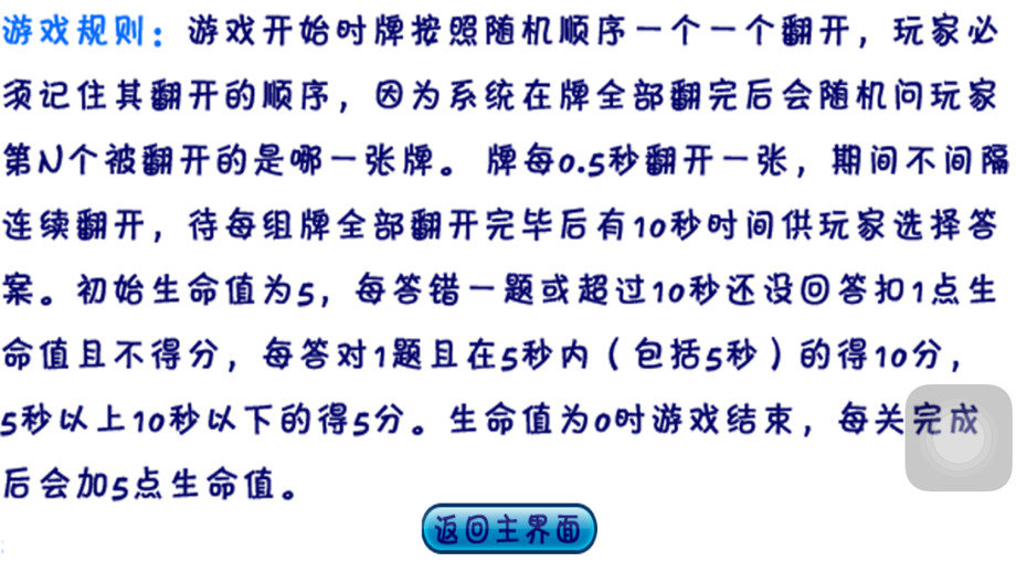 1、整个挑战十分轻松休闲又具有丰富的教育性,是一款帮助提升记忆力的玩法;