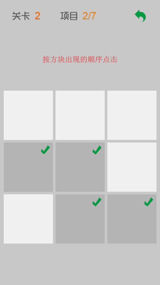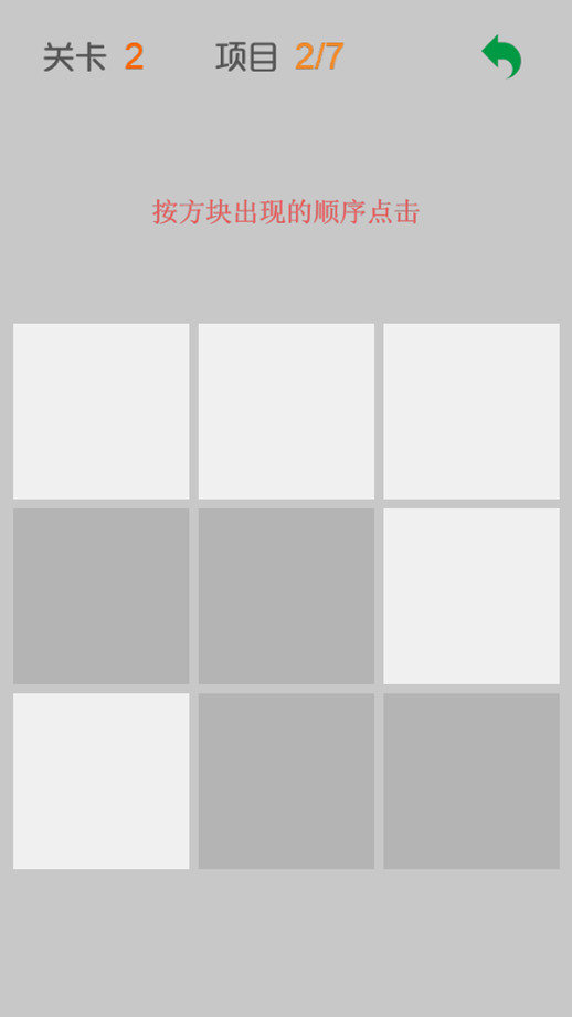 随着关卡的增加,点击方块的次数和位置会增多,难度不断增大。 想来一场真正的头脑风暴吗?可以满足你的要求,游戏从观察力、反应力、记忆力等多方面考察你的大脑,请分享给您的朋友一起玩!