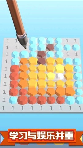 2、在此像素游戏中,每个涂色中的每个像素都标记有正确的数字填色字。