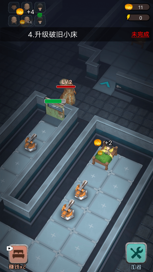 躺平发育王者是一款策略防御冒险闯关小游戏,以解锁来躺平呀游戏各种不同的场景,给大家呈现出完全不同的防御策略效果,躺平发育王者会遇到各种各样的危险,玩家需要提高自己的战斗力增加炮塔的等级。游戏开始后,请马上寻找无人宿舍休息。进入宿舍后直接上床,无论发生什么事千万不能下床,睡觉就能涨金币,通过金币升级宿舍和购买装备。熄灯了,请不要发出声音,不然可能会发生不好的事情。