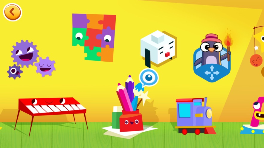* 打扫房间:用您的手指将玩具正确地拖放至玩具收纳盒。