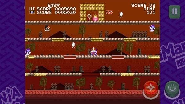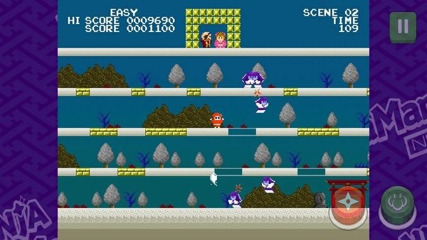 通过触摸跳转按钮来跳跃,以及通过触摸ninja星按钮来拍摄ninja星。