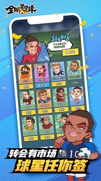 全明星足球是全新上线打造的足球竞技手游,在游戏中玩家将化身为足球经理,众多球员等你培养,任你组建强大球队阵容,不断排兵布阵,调整队形,参加世界联赛,在线pk对决,赢得比赛冠军,你的主要任务就是踢足球,你能够用的角色有很多,包括很多的明星,国际足球巨星都能在赛场出现,所以游戏能带给你精彩的足球体验,你只需要在球场上发挥出你的本领,你就能得到他们的欣赏。