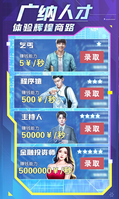 2、每个角色都有多种不同的发展路线,职业选择也非常丰富,打造最独特好玩的商业冒险,体验做自己喜欢的事,实现你的梦想和愿望。