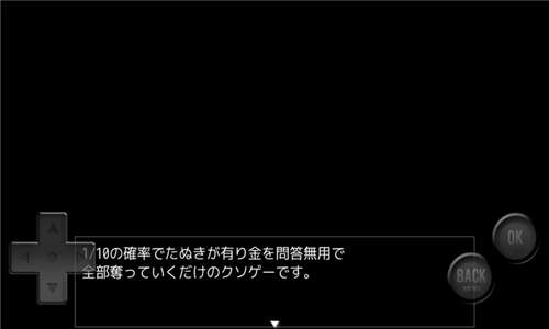 10分之一的概率被狸猫夺走一切是一款相当魔性的益智休闲游戏。在这款游戏中玩家们将会成为一名刚刚步入社会的少年。在这里你可以完全沉浸于赚钱实现梦想的氛围之中。直到这一天你遇到了让你无可奈何的恐怖狸猫!他每一次和你打交道都有十分之一的可能夺走你的全部财产!你该如何应对?
