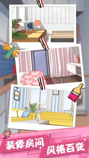 达到某种特定的解锁条件,可装修各种风格的房间,邀请越来越多的美女租客入住!