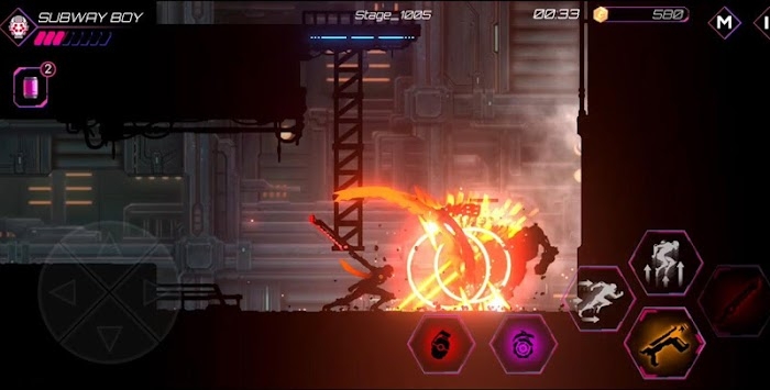 2、酷炫的剪影动作,随着近程和远程武器施展的独创的2D剪影动作带来的极度沉浸体验,体验一下强力的武器连击带来的华丽战斗动作吧。