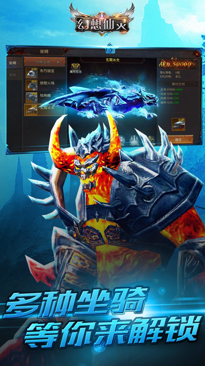 3.游戏里面的坐骑非常的有霸气,还可以增加你的战斗力和属性。