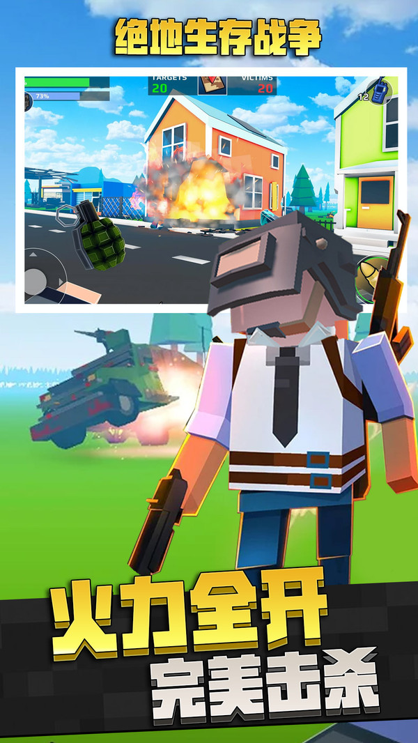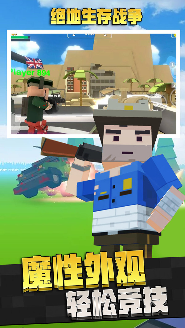 绝地生存战争是一款多人在线战斗竞技游戏,玩家需要在荒岛上收集资源、建造基地、对抗其他玩家,最终成为生存至最后的玩家。