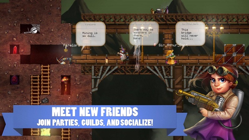 在《地下王国》中,玩家将探索随机生成的地下世界,挖掘资源,寻找宝藏,与怪物战斗,建立并升级自己的基地。游戏拥有丰富的任务和挑战,以及多种地下生物和资源。玩家可以组队与其他玩家一起探险,也可以进行PVP对战。
