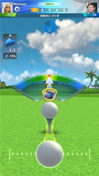 2. 在比赛中,玩家需要调整角度和力度,发射高尔夫球,并尽可能让球落在目标区域内。