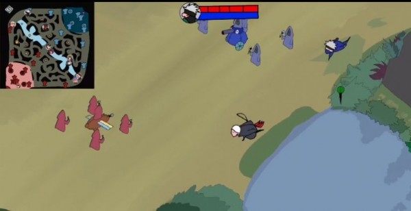 3. 地图中有多个区域,包括草丛、防御塔和水晶等,玩家需要占领有利地形,获取资源。