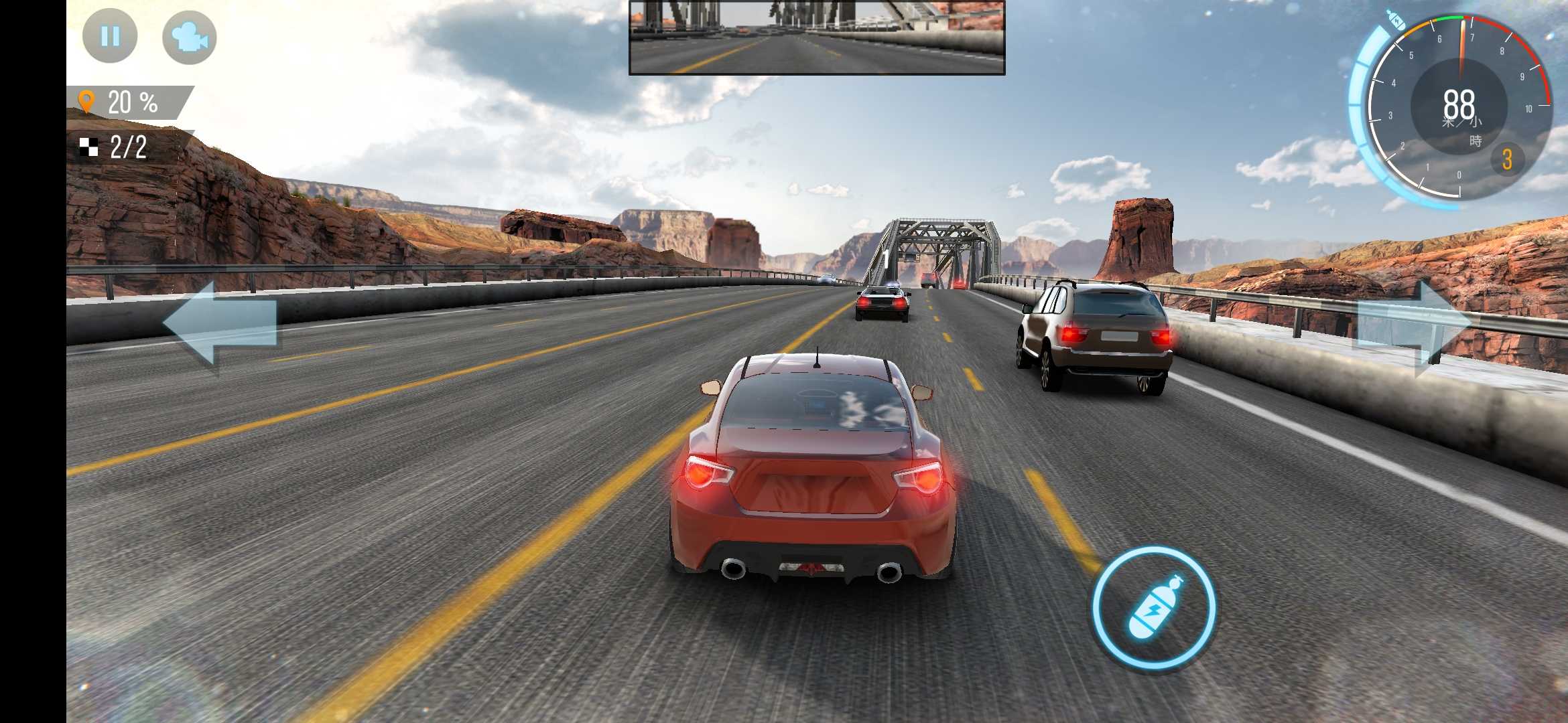 3. 在比赛中,玩家需要掌握赛车的加速、刹车、转向等技巧,尽可能快地完成比赛,获得胜利。