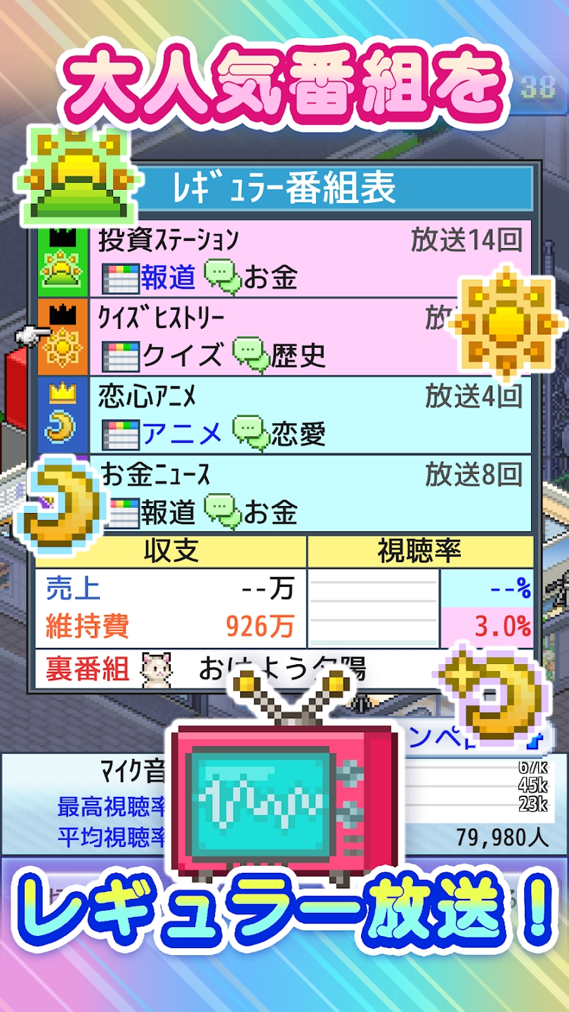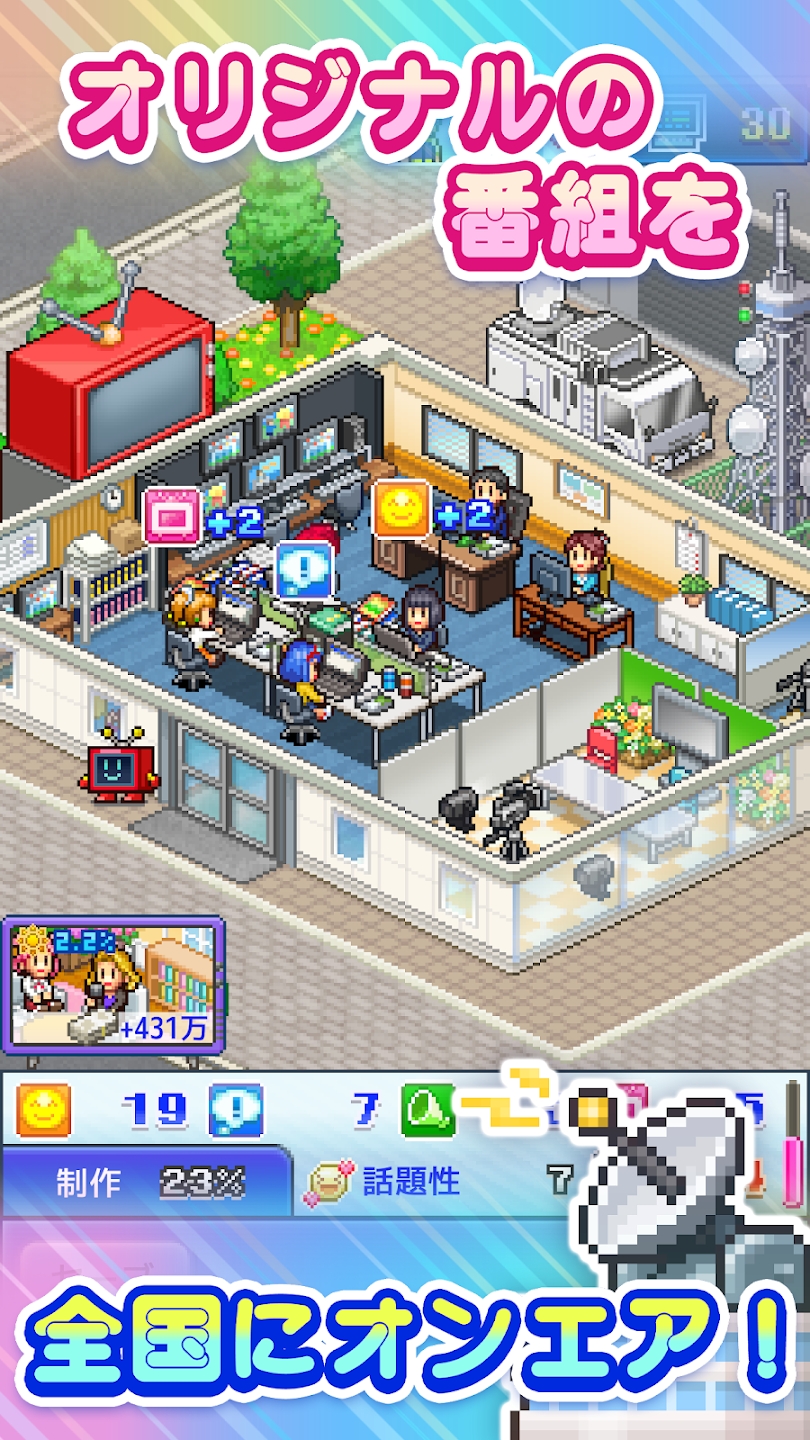 《电视工作室物语》是一款模拟经营类游戏,玩家将扮演一位电视制作人,负责创建并管理自己的电视工作室。在游戏中,玩家需要招募和培养各类人才,制作精彩的电视节目,扩大工作室的影响力,最终成为电视界的佼佼者。
