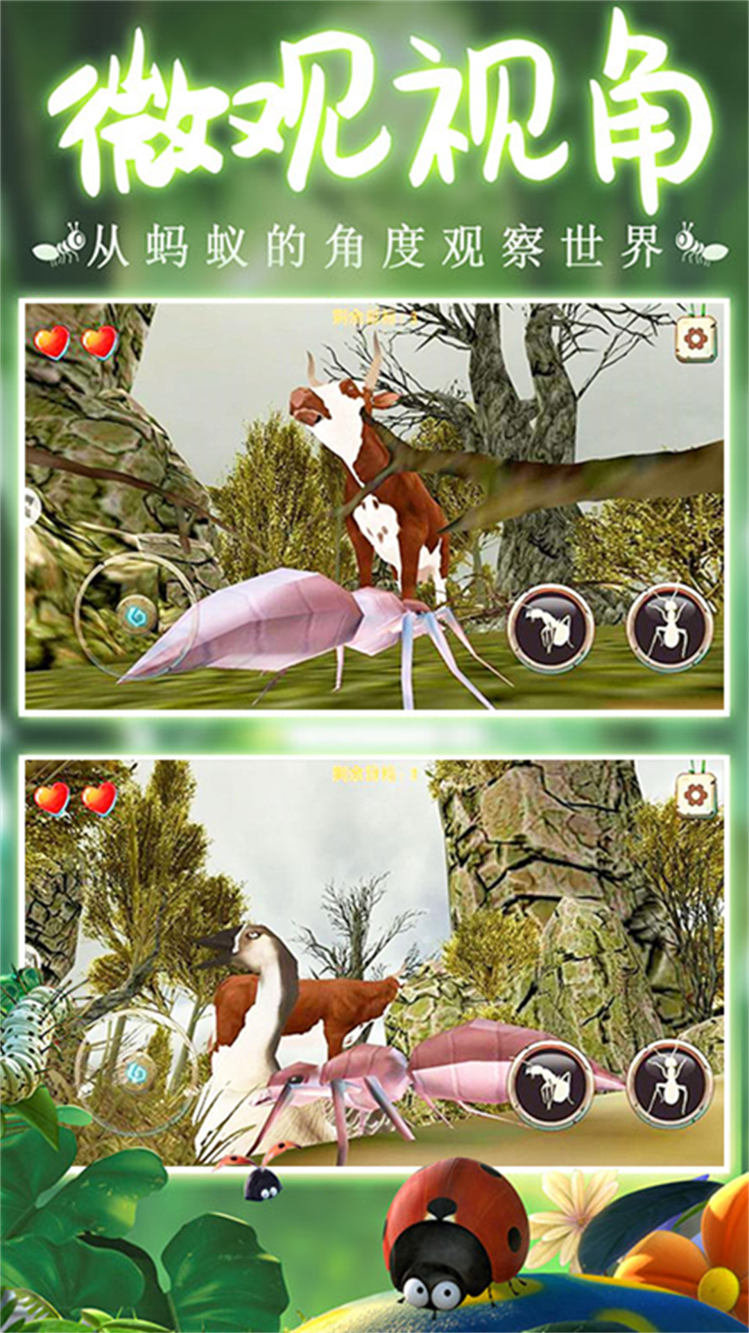 《模拟蚂蚁大作战》是一款以蚂蚁为题材的模拟经营游戏。在游戏中,玩家需要管理一个蚂蚁巢穴,通过收集食物、水源和建筑材料来扩张领土,并与其他生物进行战斗。游戏采用了独特的3D渲染技术,让玩家能够身临其境地感受蚂蚁的生活。同时,游戏还提供了多种任务和挑战,让玩家在经营蚂蚁帝国的过程中体验到无穷的乐趣。