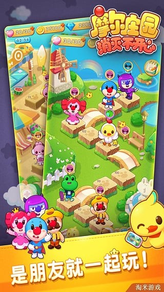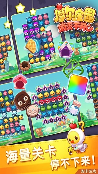 《摩尔庄园消灭不开心》是一款消除类手游,玩家需要通过点击消除小动物方块来获得高分。游戏中有多种不同的小动物方块,每个方块都有三种不同的表情,微笑、瞪大眼、超开心。玩家需要注意每个小动物方块的表情变化,以便更好地消除方块。游戏中有多种不同的关卡和挑战,玩家需要不断挑战自己的极限,获得更高的分数和更多的奖励。