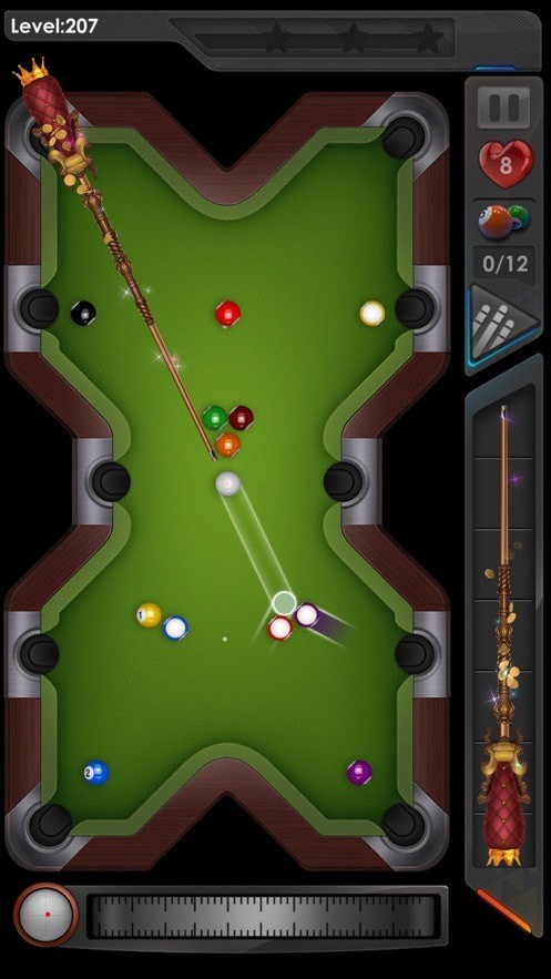 2. 进入游戏后,玩家需要通过触摸屏幕或点击鼠标来操作球杆,将球打入袋口。