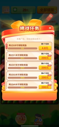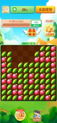 2. 任务挑战:每个关卡都设定了特定的任务目标,如收集指定数量的农作物、达到一定的积分等。玩家需要在规定的时间内完成任务,以解锁新的关卡和奖励。
