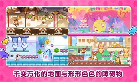 2. 闯关挑战:玩家需要控制姜饼人不断奔跑,躲避障碍物并收集果冻,以获取更高的分数。