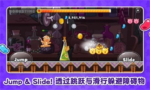 1. 操作简单:游戏采用触屏操作方式,玩家只需通过点击和滑动屏幕即可控制姜饼人进行奔跑、跳跃和滑行。