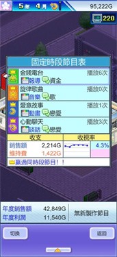 3. 播出节目:玩家可以将制作好的节目在电视台播出,吸引观众并提高收视率。同时,还需要关注观众的反馈和评价,不断调整节目内容和形式。