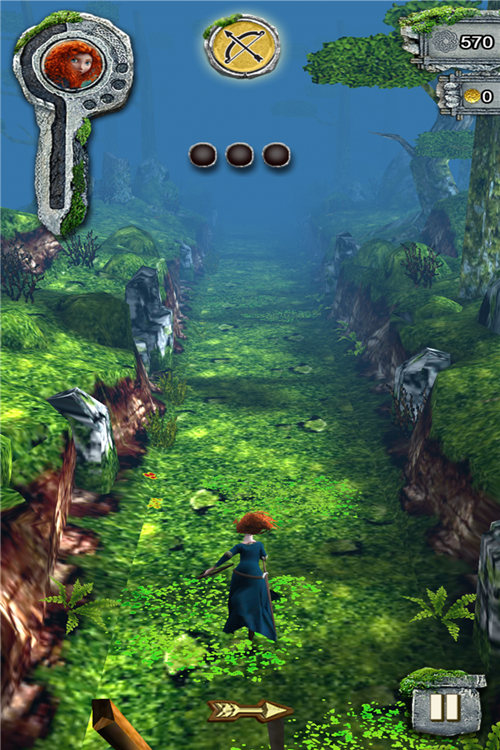 1. 操作简单易懂:游戏采用触屏手势加重力感应的模式,玩家只需左右晃动设备控制Merida在小路上左右移动,通过滑动屏幕实现跳跃、滑行和转弯等动作。