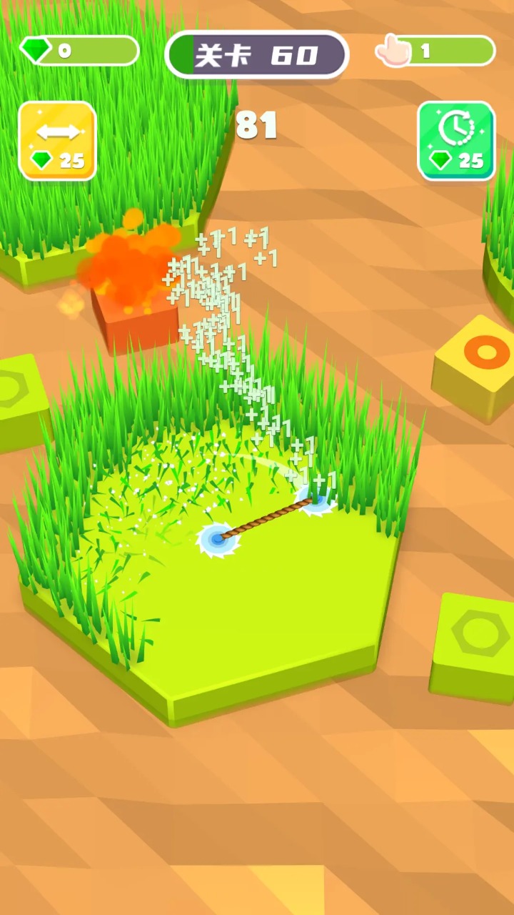 1. 休闲益智:游戏操作简单易上手,适合各年龄段的玩家。通过割草任务,锻炼玩家的空间感知和手眼协调能力。